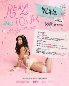 Along Ritorukai Cray Dalton Májo Rivas Eventos Cray Dalton Cray Dalton 21 de Febrero del 2026General $399 M&G $899 Comprar Eventos Majo Rivas Majo Rivas en Cuernavaca 6 DE MARZO DEL 2026General $400 Meet & Greet $800 Comprar Majo Rivas en Toluca 7 DE MARZO DEL 2026General $400 Meet & Greet $800 Comprar Majo Rivas en Monterrey 8 DE MARZO DEL 2026General $400 Meet & Greet $800 Comprar Majo Rivas en Pachuca 13 DE MARZO DEL 2026General $400 Meet & Greet $800 Comprar Majo Rivas en Puebla 14 DE MARZO DEL 2026General $400 Meet & Greet $800 Comprar Majo Rivas en Querétaro 19 DE MARZO DEL 2026General $400 Meet & Greet $800 Comprar Majo Rivas en Guadalajara 20 DE MARZO DEL 2026General $400 Meet & Greet $800 Comprar Majo Rivas en San Lius Potosí 21 DE MARZO DEL 2026General $400 Meet & Greet $800 Comprar Majo Rivas en León 22 DE MARZO DEL 2026General $400 Meet & Greet $800 Comprar