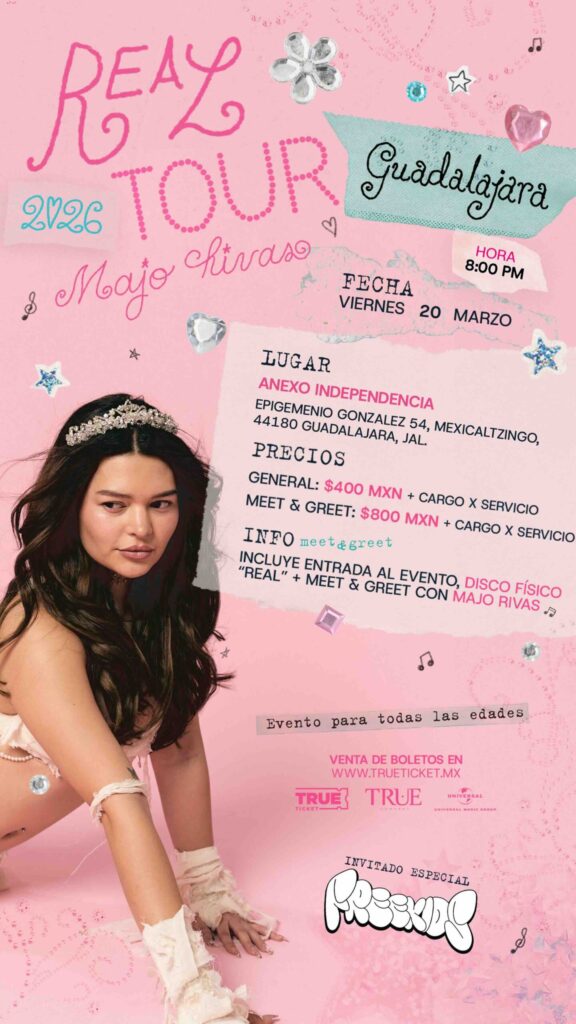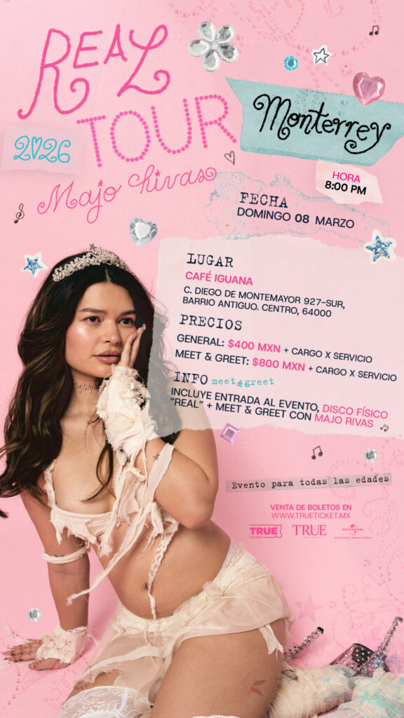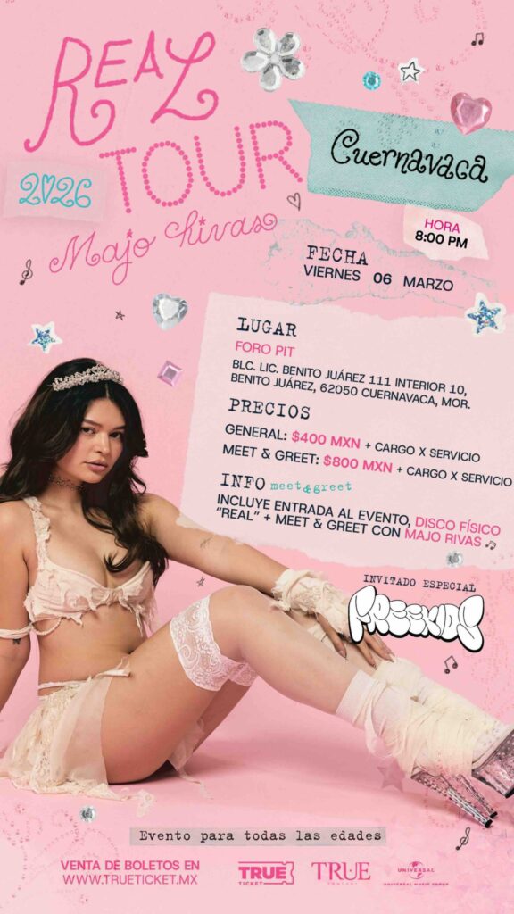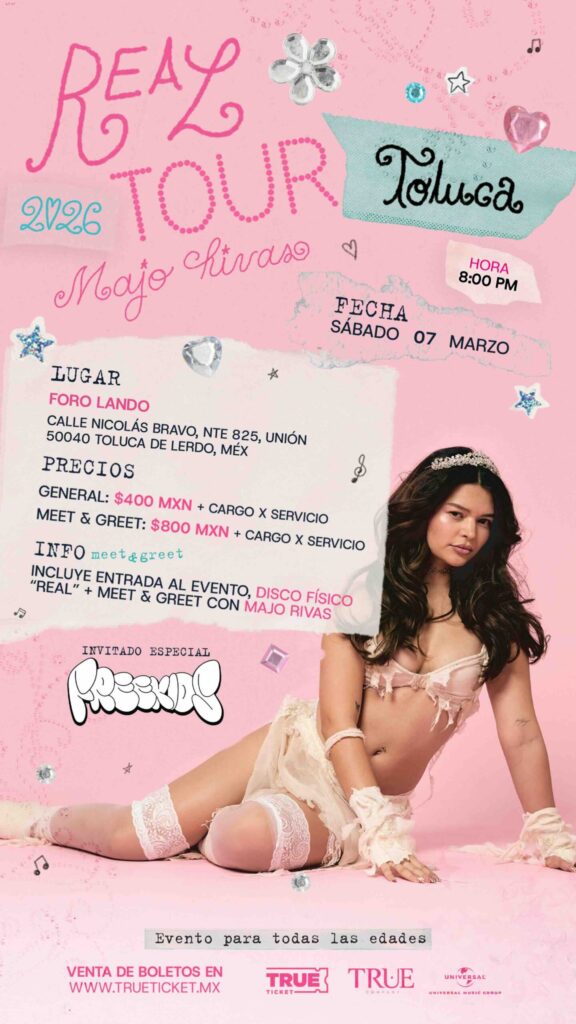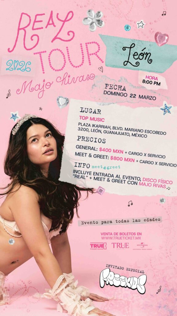 Majo Rivas Próximos eventos Majo Rivas en Cuernavaca VIERNES 6 DE MARZO DEL 2026General $400 Meet & Greet $800 Comprar Majo Rivas en Toluca SÁBADO 7 DE MARZO DEL 2026General $400 Meet & Greet $800 Comprar Majo Rivas en Monterrey DOMINGO 8 DE MARZO DEL 2026General $400 Meet & Greet $800 Comprar Majo Rivas en Pachuca VIERNES 13 DE MARZO DEL 2026General $400 Meet & Greet $800 Comprar Majo Rivas en Puebla SÁBADO 14 DE MARZO DEL 2026General $400 Meet & Greet $800 Comprar Majo Rivas en Querétaro JUEVES 19 DE MARZO DEL 2026General $400 Meet & Greet $800 Comprar Majo Rivas en Guadalajara VIERNES 20 DE MARZO DEL 2026General $400 Meet & Greet $800 Comprar Majo Rivas en San Luis Potosí SÁBADO 21 DE MARZO DEL 2026General $400 Meet & Greet $800 Comprar Majo Rivas en León DOMINGO 22 DE MARZO DEL 2026General $400 Meet & Greet $800 Comprar